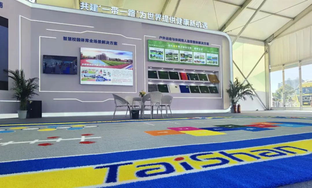 球盟会携户外运动与休闲人造草整体解决方案亮相会场。作为国内首家通过足联、曲联双认证的企业可根据不同用户的户外运动需求,生产多种类型的户外运动草坪。